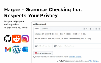 Harper to szybki korektor gramatyczny i ortograficzny, który działa całkowicie offline, zapewniając prywatność użytkownika. Program oferuje błyskawiczne sugestie dotyczące gramatyki i pisowni w czasie rzeczywistym, bez konieczności przesyłania danych do internetu. Jest idealny dla pisarzy, deweloperów oraz wszystkich, którzy cenią sobie prostotę i skuteczność bez zbędnych reklam czy powiadomień. Harper wspiera różne odmiany języka angielskiego, co czyni go wszechstronnym narzędziem dla użytkowników na całym świecie.